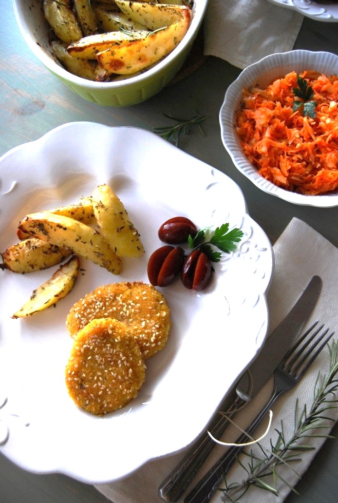Coat each piece in breadcrumbs with sesame seeds, or use the gluten-free corn flour coating.