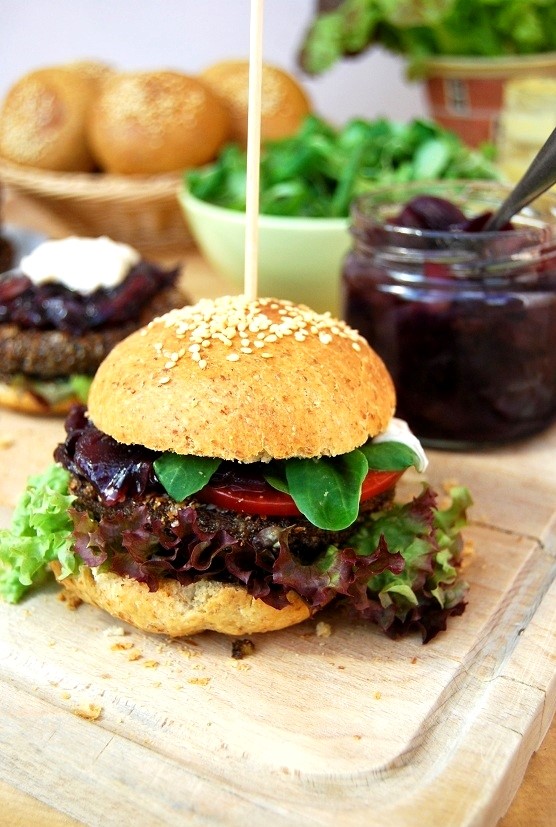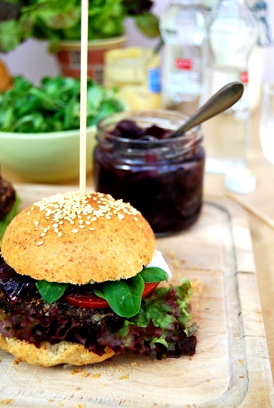 Easy Vegan Mushroom Millet Burgers with Caramelized Red Onion Jam (Healthy Comfort Food)