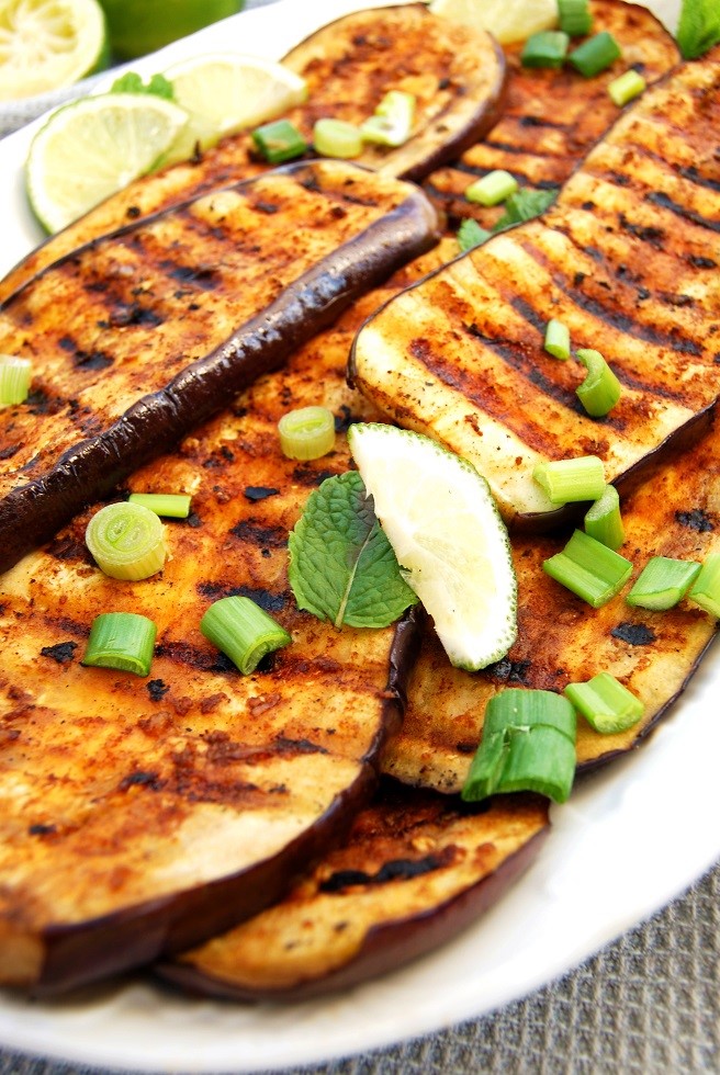 Grill the eggplant on a barbecue or a grill pan. Lightly oil the pan if needed to prevent sticking. Cook for a few minutes on each side until tender and nicely charred.